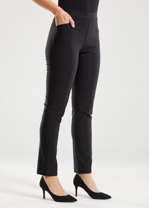 The pull-on style with an elastic waistband offers easy dressing and all-day comfort, while front pockets add practical detail. A versatile piece for work, travel, or everyday wear, these pants are as comfortable as they are polished. Due to the quality of the fabric and cut, they retain their shape.